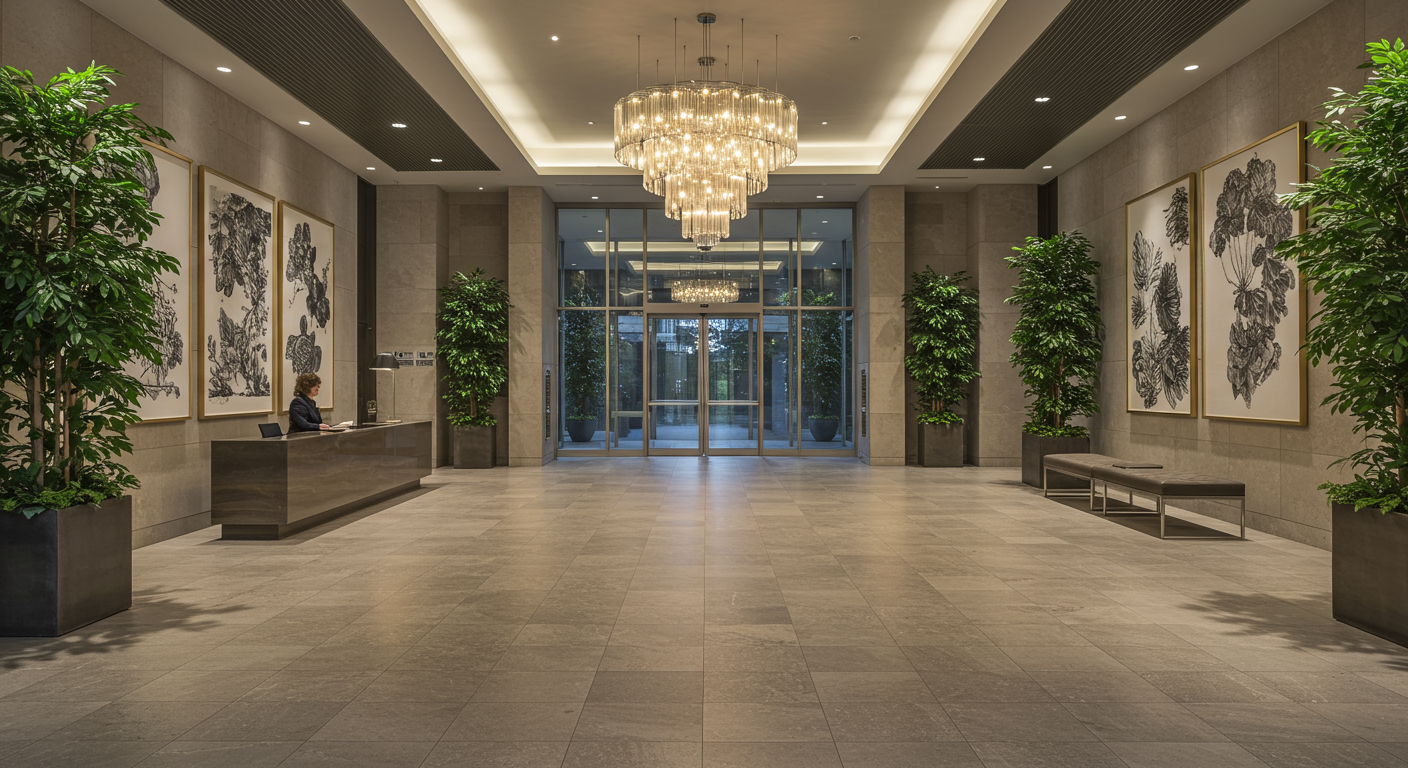The Wilshire Corridore in Westwood has been known for luxurious condo living for a generation. The entree way is just one bit of evidence of what the residences here enjoy throughout.